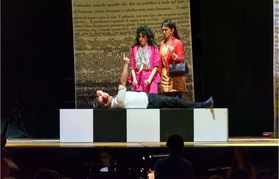 Re-adaptation of Trieste's musical company of the Musical "Nine", originally written by Maury Yeston and Arthur Kopit, based on Fellini's movie " 8½ "-