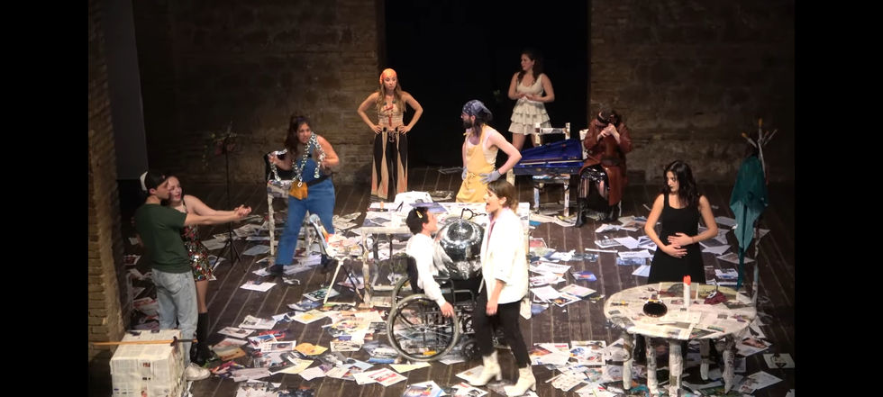 A group of people find themselves stuck in a loop : they must bring on stage everyday, three times a day "La Fucina di Efesto" in order for the Vulcano nearby to erupt. The play, wonders about the role of Theater for the society and the actors themselves.